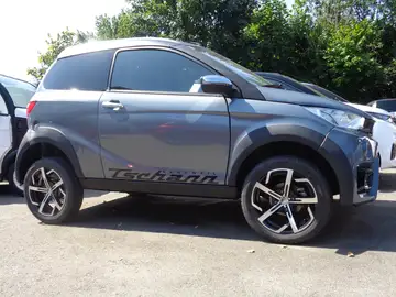 Der Aixam Crossover Premium von 2021 ist ein Kleinstwagen mit einer luxuriösen ausstattung, darunter ein 7" -Tablet mit Android Auto und Apple CarPlay, Rückfahrkamera, 4 Lautsprecher-Soundsystem. Alufelgen im "Diamant Style" und Kunstledersitze. Das Modell verfügt über einen geräumigen Kofferraum mit 1.100 Litern Ladevolumen, eine erhöhte Bodenfreiheit durch den SUV Pack sowie einen Dieselmotor.