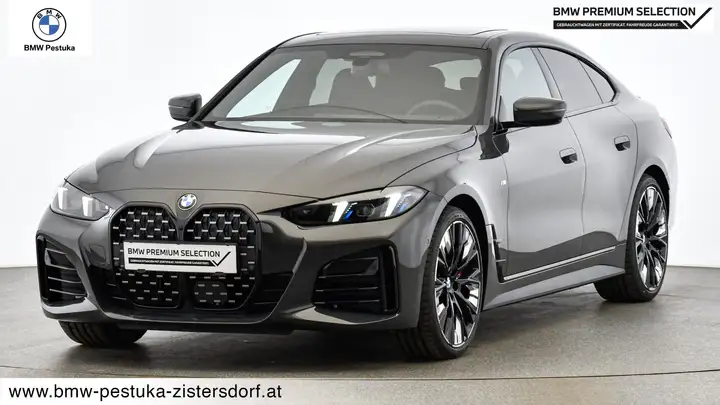Dieser BMW 4er Gran Coupé ist ein Fahrzeug für Menschen, die mehr wollen als nur von A nach B zu kommen. Die außergewöhnliche BMW Individual Lackierung in Dravitgrau macht ihn bereits im Stand zu einem Statement – tief, schimmernd und exklusiv wie kaum eine andere Farbe.