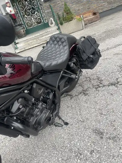 Hat Stürzbügel, Windschild mit Maske, Seitentaschen plus für 2 Personen extra Sissybar plus Extra 1er Gelsitz , Tanküad , Extra Luftfilter