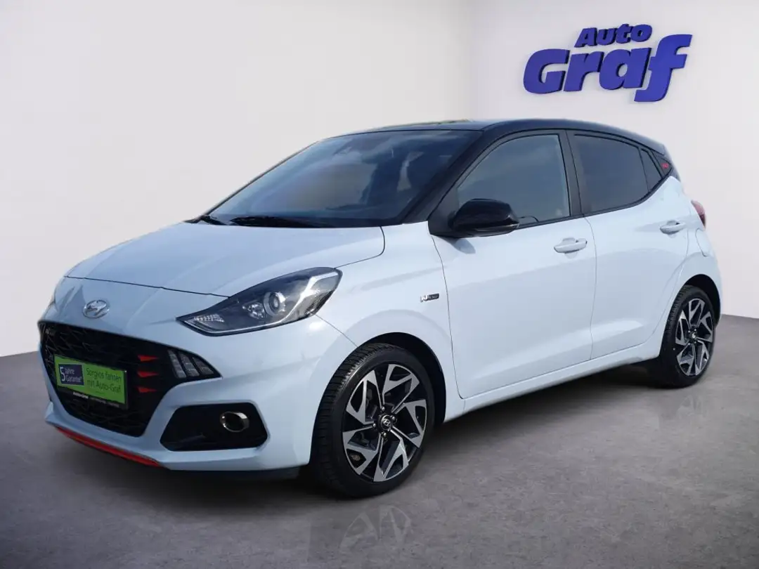 Bluetooth-Einheit, DAB - Digitales Radio, Fahrersitz manuell höhenverstellbar, LED-Tagfahrlicht, Nebelscheinwerfer, Parksensoren hinten inkl. Rückfahrkamera, Audiosystem mit 8 Zoll Farbdisplay, Android Auto und Apple CarPlay, beheizbares Lederlenkrad und beheizbare Vordersitze, Kabelloses Aufladen des Smartphones, Klimaautomatik, 16 Zoll Leichtmetallfelgen im N-Line Design, LED-Heckleuchten, Zweitonlackierung - Kontrastdach in schwarz, Metallpedale, N Sportlederlenkrad mit roten Nähten, N Sportschaltknauf, N Sportsitze, Schwarzer Dachhimmel