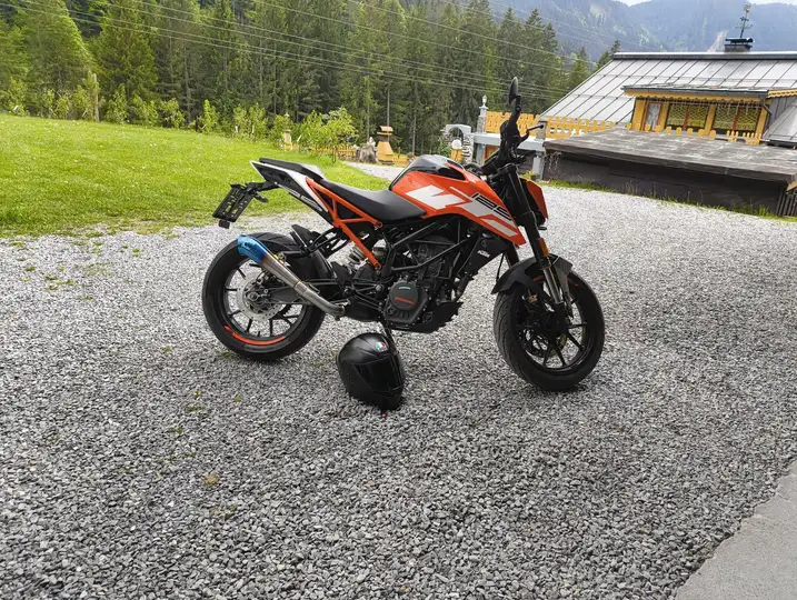 Hi verkaufe hiermit meine KTM. Alles original.( Auspuff auf den ersten Bild nicht Straßen legal)Top Zustand. Hat einen frischen Service und Reifen wurden vor 200km getauscht.
