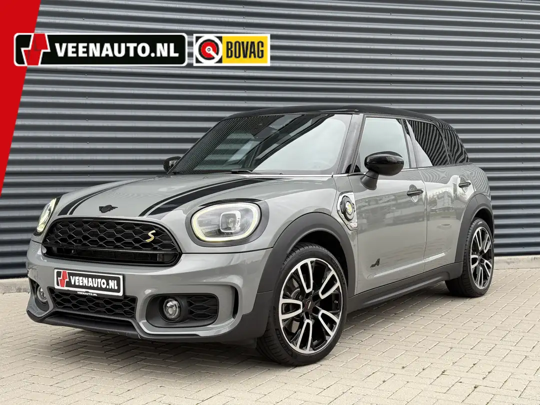 Schitterende Mini Countryman SE Plug in Hybride John Cooper Works in Moonwalk Grey metallic met Black Optic pakket en 19 inch JCW licht metalen velgen. De Mini is voorzien van veel gave opties zoals: Apple carplay, achteruitrijcamera, navigatie, keyless entry, virtuele cockpit, stoelverwarming, parkeersensoren , draadloze telefoonlader, LED sfeer interieur verlichting, cruise control, etc..