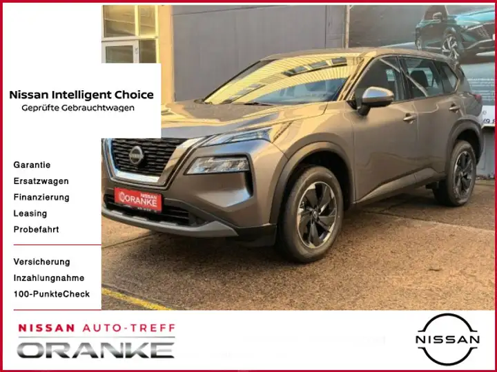 Außenausstattung, Außenspiegel elektrisch einstellbar, beheizbar und automatisch anklappbar, LED-Rückleuchten, Fahrlichtautomatik, LED-Scheinwerfer, LED-Tagfahrlicht, 18"-Leichtmetallfelgen, Deckelloser Tankverschluss (push/pull), Scheibenwischer mit Regensensor, vorne, Innenausstattung, Ablagefächer in den vorderen und hinteren Türen, Handschuhfach, beleuchtet, Schwebende Mittelkonsole mit Butterfly-Öffnung, Sonnenbrillenfach, Taschen auf der Rückseite der Vordersitze, Ausklappbare Mittelarmlehne hinten mit 2 Getränkehaltern, Kleiderhaken hinten, Kofferraumbeleuchtung, Lenkrad, lederummantelt, Lenksäule, höhen- und tiefenverstellbar, Leselampe, vorne und hinten, Schaltwippen am Lenkrad, Sonnenblenden mit Make-Up-Spiegel und Beleuchtung auf Fahrer- und Beifahrerseite, Klimaautomatik, 2 Zonen, inkl. Pollenfilter, 6 Verzurrösen im Kofferraum, Herausnehmbarer Kofferraumboden, einteilig, Fahrersitz manuell höhenverstellbar, Lordosenstütze Fahrersitz elektrisch einstellbar, Rücksitzbank asymmetrisch (60:40) umklappbar, Sicherheit und Technik, Anti-Blockiersystem (ABS) mit elektronischer Bremskraftverteilung (EBD), Berganfahr-Assistent, Einparkhilfe, vorne und hinten, Elektronisches Stabilitätsprogramm (ESP), Fernlicht-Assistent, Intelligenter Spurhalte-Assistent aktiv mit korrigierendem Bremseingriff, Querverkehrs-Warner, Rückfahrkamera in Farbe, Verkehrszeichenerkennung, Fahrerassistenz-Paket PRO: Intelligenter Adaptiver Geschwindigkeits- und Abstands-Assistent, Reifendruck-Kontrollsystem (TPMS - tyre pressure monotoring system), Warnsignal für nicht angelegte Sicherheitsgurte akustisch und Warnlampe, vorne und hinten, Bluetooth®-Schnittstelle für Mobiltelefon und Audio-Streaming, 6 Lautsprecher, IAuto-Hold-Funktion, Digitales Cockpit mit 12,3“-TFT-Bildschirm, Digitalradio (DAB), Haifisch-Antenne, Induktives Smartphone-Ladegerät, USB-Eingang (Typ A und C) vorne und 2 Eingänge (Typ C) hinten, e-PKB, Innenspiegel automatisch abblendbar, Fahrmodi: Standard, Sport, Eco, Fensterheber elektrisch, vorne und hinten, mit Komfortfunktion, Intelligent Key mit Start/Stopp-Knopf, Keyless Entry und automatischer Ent- und Verriegelung bei Annäherung und Entfernung, Alarmanlage, Fahrer- und Beifahrerairbag, Intelligente Müdigkeitserkennung, Intelligenter Autonomer Notbrems-Assistent hinten für feststehende und sich langsam bewegende Objekte, Intelligenter Autonomer Notbrems-Assistent vorne mit Fußgänger- & Radfahrererkennung und Kreuzungs-Assistent, Intelligenter Frontkollisionswarnungs-Assistent, ISOFIX-Kindersitz-Befestigungspunkte, hinten, auf den äußeren Plätzen inkl. Top Tether(R), Notruf und Pannenanruf (eCall), Seitenairbags vorne, Totwinkel-Assistent aktiv mit korrigierendem Bremseingriff, Vorhang-Airbags, Warnblinkautomatik, Zentralairbag, rechte Seite des Fahrersitzes, Lenkradfernbedienung für › Audiosystem › Bordcomputer › Geschwindigkeitsbegrenzer und -regelanlage, NissanConnect Infotainment › 8"-Farbdisplay mit Touchscreen › Nissan Help & Support › Kabelgebundenes Apple CarPlay® und Android Auto™, NissanConnect Services Infotainment › Nissan on Google Assistant und on Amazon Alexa® › Basis Services NissanConnect App › Premium Services NissanConnect App exkl. Karten & Live Verkehr, Steckdose, 12-Volt, 2-fach