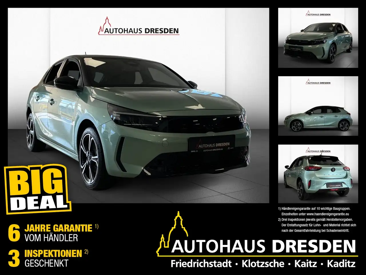 '' gilt für Opel-Modelle und sind ausschließlich für unsere regionalen Kunden im Raum Dresden sowie angrenzende Orte im Radius von 50 Kilometern erhältlich da es sich um eine Händler-Eigengarantie handelt.