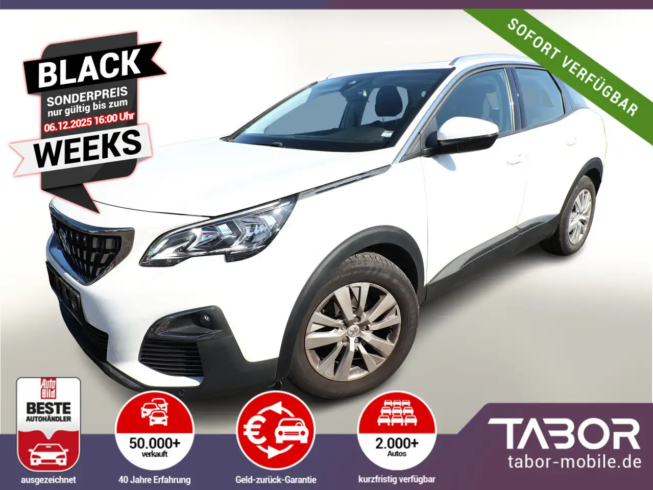 Dieser sehr schöne 3008 in hochwertiger Active-Ausführung mit Panorama-Schiebedach mit Intervallschaltung und Einklemmschutz, Audio-Navigationssystem NAC 3-D, DAB+ mit Farbdisplay und Connect-Box, City-Paket inkl. Mobile Online Dienste Mirror Screen, Rückfahrkamera mit 180° Umgebungsansicht und Einparkhilfe vorn und hinten, Sitzheizung vorn, Gepäckraumboden verschiebbar, variabel, Dachreling (Aluminium), Fahrassistenz-System: Verkehrszeichenerkennung, Geschwindigkeits-Regelanlage (Tempomat) inkl. Geschwindigkeits-Begrenzeranlage in attraktivem Schneeweiß wurde in unseren Vertragswerkstätten auf Herz und Nieren geprüft! Garantiemindestdauer 12 Monate. Zu einer Probefahrt sind Sie jederzeit herzlich willkommen!