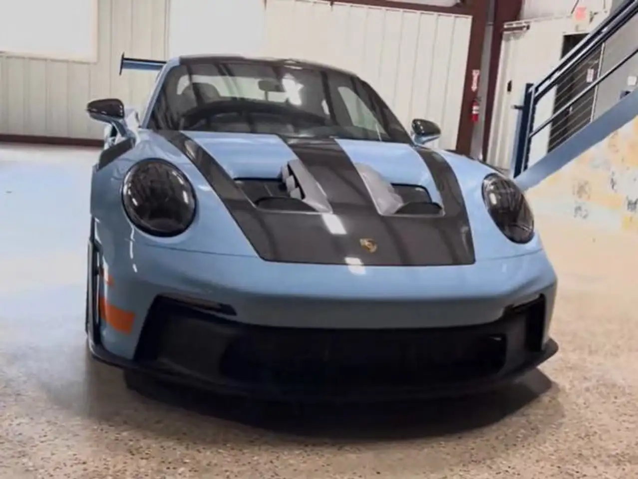 Sonderlackierung in Gulf Blue mit orangefarbenen Akzenten