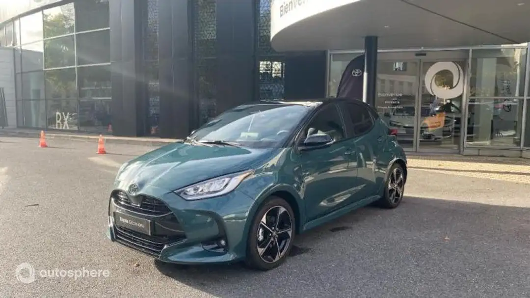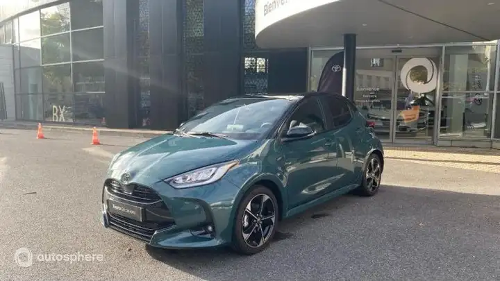 Marque: Toyota Modèle: Yaris Version: 130h Collection 5p MY25 Energie: Hybride Année: 2025 Couleur: Bi-ton Vert Imperial / Toit noir Carrosserie: Berline Boite: Automatique Portes: 5 Places: 5 Cylindrée: 1490 Garantie: Label Toyota Occasions 36 mois TFR Equipements: 6 Haut parleurs, ABS, Accoudoir central AV, AFIL, Aide au démarrage en côte, Aide au freinage d'urgence, Airbag conducteur, Airbag passager, Airbag passager déconnectable, Airbags latéraux avant, Airbags rideaux, Airbags rideaux AR, Allumage des phares automatique, Antidémarrage électronique, Antipatinage, Appel d'Assistance Localisé, Appel d'Urgence Localisé, Assistance de maintien de trajectoire, Bacs de portes avant, Banquette 60/40, Banquette AR rabattable, Caméra de recul, Capteur de luminosité, Capteur de pluie, Clim automatique bi-zones, Commandes du système audio au volant, Commandes vocales, Compte tours, Démarrage sans clé, Détecteur de sous-gonflage, EBD, Eclairage d'ambiance, Ecran multifonction couleur, Ecran tactile, ESP, Feux arrière à LED, Feux de jour à LED, Filtre à Pollen, Fixations Isofix aux places arrières, Freinage automatique d'urgence, GPS Cartographique, Interface Media, Jantes Alu, Kit mains-libres Bluetooth, Lampe de coffre, Limiteur de vitesse, Lunette arrière surteintée, Lunette arrière teintée, Ordinateur de bord, Phares antibrouillard LED, Phares avant LED, Plancher de coffre mobile, Prise USB, Radar de stationnement AR, Radar de stationnement AV, Radio, Radio numérique DAB, Reconnaissance panneaux de signalisation, Régulateur de vitesse adaptatif, Rétroviseur intérieur électrochrome, Rétroviseurs dégivrants, Rétroviseurs électriques, Rétroviseurs rabattables automatique, Rétroviseurs rabattables électriquement, Services connectés, Siège cond. avec réglage lombaire électr, Siège conducteur chauffant, Siège conducteur réglable en hauteur, Siège passager chauffant, Siège passager réglable en hauteur, Simili-cuir et Tissu, Système avancé de détection d'obstacles, Système d'accès sans clé, Système d'alerte de véhicule en approche, Système d'éclairage intelligent, Système de contrôle des angles morts, Système de prévention des collisions, Système de prévention des collisions AR, Tablette cache bagages, Verrouillage centralisé à distance, Verrouillage centralisé des portes, Vitres arrière électriques, Vitres arrière surteintées, Vitres arrière teintées, Vitres avant électriques, Volant chauffant, Volant cuir, Volant multifonction, Volant réglable en profondeur et hauteur, Bi-ton Vert Imperial / Toit noir, Pack Techno