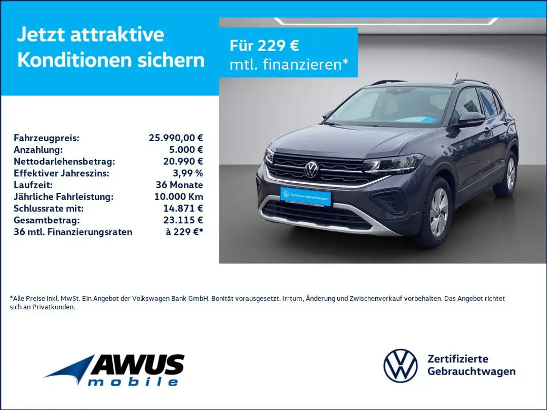 *Ein Volkswagen Bank-Finanzierungsbeispiel der Volkswagen Bank GmbH, Gifhorner Straße 57, 38112 Braunschweig für Privatkunden: 229,00 EUR monatl. Rate, 3,99 Prozent eff. Jahreszins bei 36 Monaten Laufzeit, einer Anzahlung von 5.000,00 EUR, einer jährlichen Laufleistung von 10.000 km und einer Schlussrate von 14.871,03 EUR. (Sollzins gebunden p.a. 3,99 Prozent, Bruttokreditbetrag: 23.115,03 EUR, Nettokreditbetrag: 20.990,00 EUR)