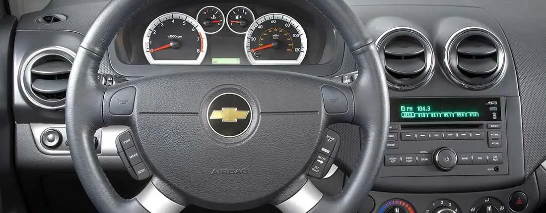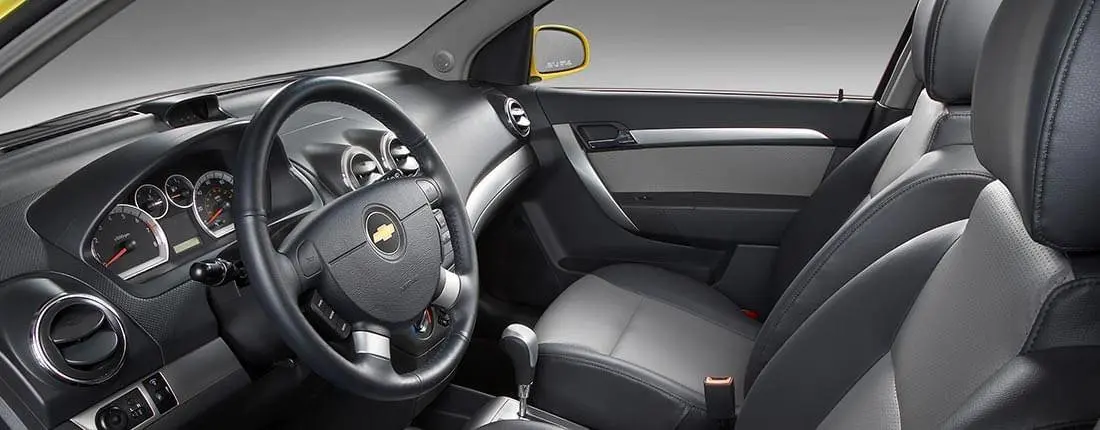 Da der Chevrolet Aveo in erster Linie ein zweckmäßiger Kleinwagen ist, sollten Interessenten *ein eher schlichtes Interieur erwarten. Denn Armaturen wirken in ihrer Kunststoffoptik auf den zweiten Blick etwas billig, obwohl bei der Verarbeitung nichts auszusetzen ist. Dafür lässt sich im Aveo alles intuitiv und einfach bedienen. Bezüglich des Innendesigns hebt sich die zweite Modellgeneration, vor allem bei den Armaturen, die denen eines Motorrades nachempfunden sind, ab. Je nach Baujahr und Version ist der Chevrolet Aveo mehr oder weniger gut ausgestattet. Wer zur "LTZ" Version greift, bekommt einen Bordcomputer und Klimaanlage, Multifunktions-Lederlenkrad, Bluetooth- und USB-Schnittstellen, elektrische Fensterheber vorne und hinten sowie 15-Zoll-Leichtmetallfelgen serienmäßig. Der Fahrersitz ist mit einer Sitzheizung und Armlehnen ausgestattet. Zudem sind Lichtsensor, Einparkhilfe hinten, Nebelscheinwerfer und beheizbare Vordersitze vorhanden.