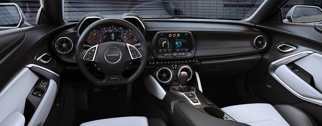 Der Innenraum des Camaro SS ist als Fahrerauto konzipiert. Die Grundausstattung verfügt über Features wie eine Klimaanlage, ein AM/FM-Radio mit 9 Lautsprechern und einen 7-Zoll-Touchscreen. Die Sitze sind aus Leder, beheizt und voll verstellbar. Ein Schiebedach gehört ebenso zur Serienausstattung wie ein Tempomat und eine Zündung per Tastendruck.
