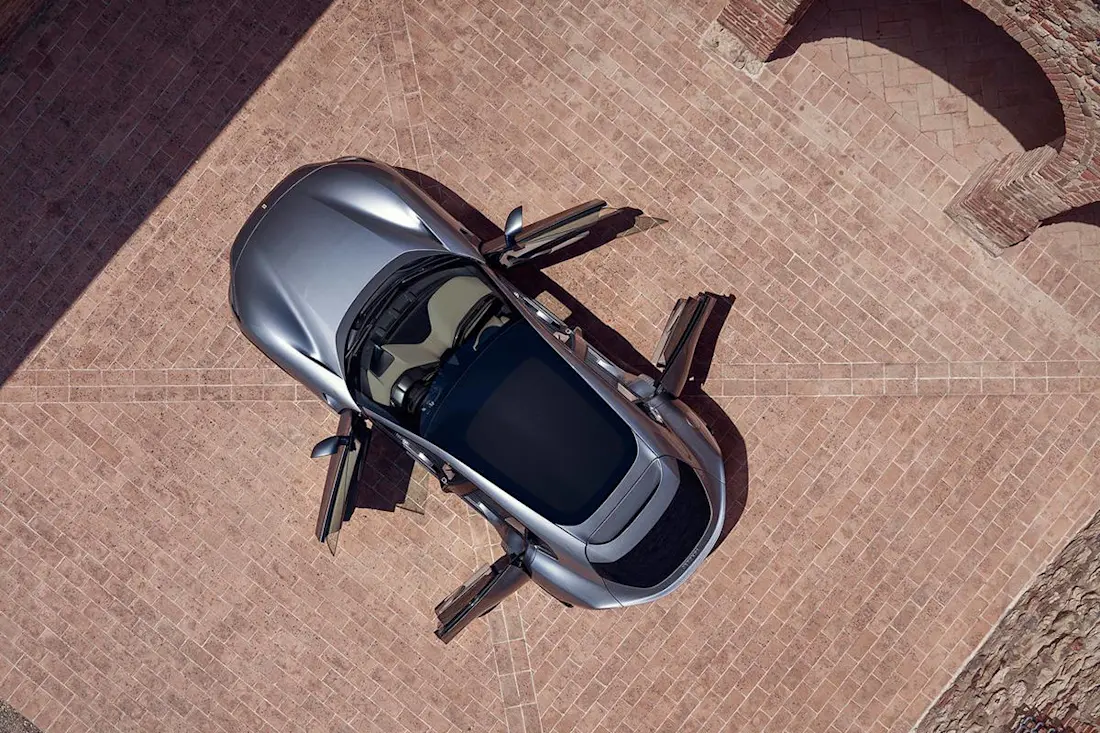 Zur Eleganz trägt auch eine weitgehend „cleane" Optik bei. Die vorderen Türgriffe sind betont klein und verschwinden gänzlich in der Karosserie. Die hinteren Türgriffe – ja, es ist der erste Ferrari mit vier Türen – sind gar nicht zu sehen, da es sich bei den beiden hinteren um gegenläufige Türen handelt. Sie werden per Knopfdruck mit elektrischer Hilfe geöffnet.
