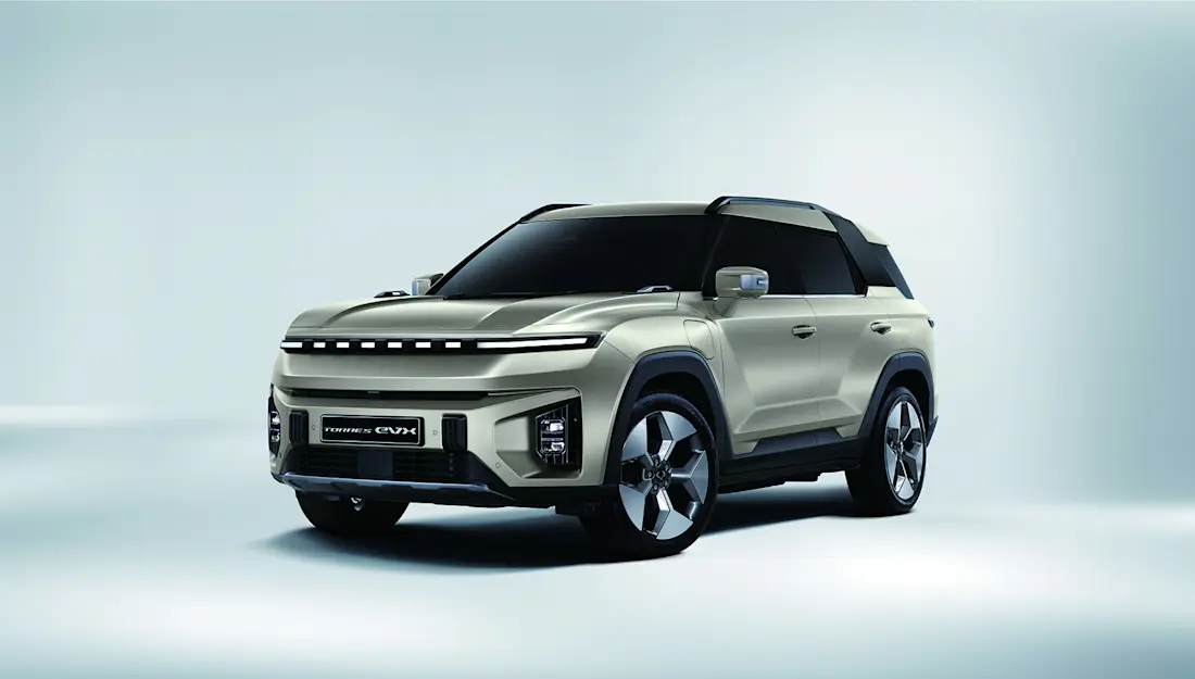 Das erste vollelektrische SUV der Marke, der KGM Torres EVX, wurde 2023 als elektrische Variante des im Vorjahr eingeführten Verbrenner-SUV Torres präsentiert. Seine Premiere feierte er auf der Seoul Motor Show, bevor er im Frühjahr 2024 den europäischen Markt erreichte. KGM bietet den Torres EVX neben der Basisversion Core in zwei Ausstattungslinien an: Bliss und Lux. Während die Bliss-Variante unter anderem mit einer Einparkhilfe vorn und Sitzbezügen in Leder auftrumpft, verwöhnt die Lux-Linie mit zusätzlichen Annehmlichkeiten wie 20-Zoll-Leichtmetallfelgen und einer elektrisch bedienbarer Heckklappe.