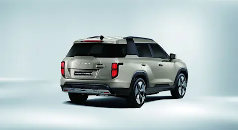 Der KGM Torres EVX zeichnet sich durch ein kantiges Offroad-Styling aus, das sofort ins Auge fällt. Die Front wird von einem aufrecht stehenden, geschlossenen Kühlergrill dominiert, der dem Elektro-SUV eine selbstbewusste Präsenz verleiht. LED-Leuchten mit einem durchgängigen Leuchtband setzen moderne Akzente und unterstreichen die fortschrittliche Technologie des Fahrzeugs. Serienmäßig rollt der Wagen auf 18-Zoll-Aluminiumfelgen, während optional auch 20-Zoll-Felgen erhältlich sind.