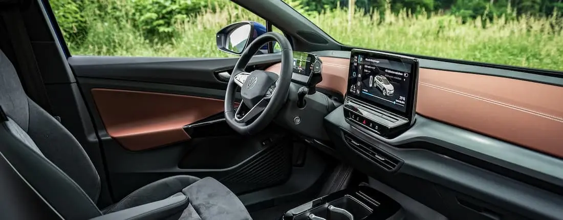 Der Innenraum des VW ID.4 fällt sowohl vorne als auch hinten sehr geräumig aus. Durch den fehlenden Mitteltunnel der Elektroplattform MEB erhöht sich die Bewegungsfreiheit der Passagiere spürbar. Volkswagen liefert für den ID.4 zudem zwei verschiedene Sitzkonfigurationen. Bereits die Standard-Sitze fahren mit aus dem VW-Bus bekannten Armlehnen vor, optional gibt es die Möglichkeit sportlich geschnittene ergoActive-Sitze für den Fahrer und Beifahrer zu ordern.