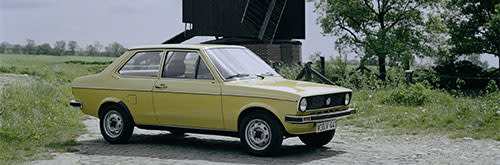 1975: Im März Serienanlauf für den Polo mit 29 kW/40 PS zu Preisen ab 7.550 Mark. Dafür gibt es den Polo nur mit 40-PS-0,9-Liter-Motor und ohne Tankuhr, Heckablage und mit Gummimatte statt zentralem Bodenteppich. Gleich zwei Preiserhöhungen in einem Jahr lassen den Audi 50 LS mindestens 8.995 Mark und den Audi 50 GL ab 9.340 Mark kosten. Dennoch erzielt der Audi 50 mit über 84.000 produzierten Einheiten sein erfolgreichstes Jahr