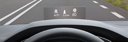 Zum Preis von 560 Euro ist das Anzeigeinstrument, das Informationen ins Sichtfeld des Fahrers projiziert, ab der Ausstattung Comfortline für Limousine, Variant, Alltrack und GTE zu haben. Informationen wie Geschwindigkeit, Verkehrszeichen, Navigationsdaten oder Warnmeldungen werden auf einer 10x15 Zentimeter großen Scheibe angezeigt, die auf Knopfdruck aus der Position hinter der Instrumententafel in den primären Sichtbereich des Fahrers ausfährt. So kann der Blick stets auf der Straße bleiben. Welche Informationen gezeigt werden, entscheidet der Fahrer über das Menü des Infotainmentsystems selbst.