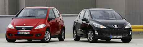 So richtig passen sie nicht zusammen, der neue Peugeot 308 und die etablierte Mercedes A-Klasse. Beide aber sind für knapp über 20.000 Euro zu haben. Der Mercedes in seiner kleinsten Ausführung, der Peugeot gut ausgestattet und mit Turbomotor.